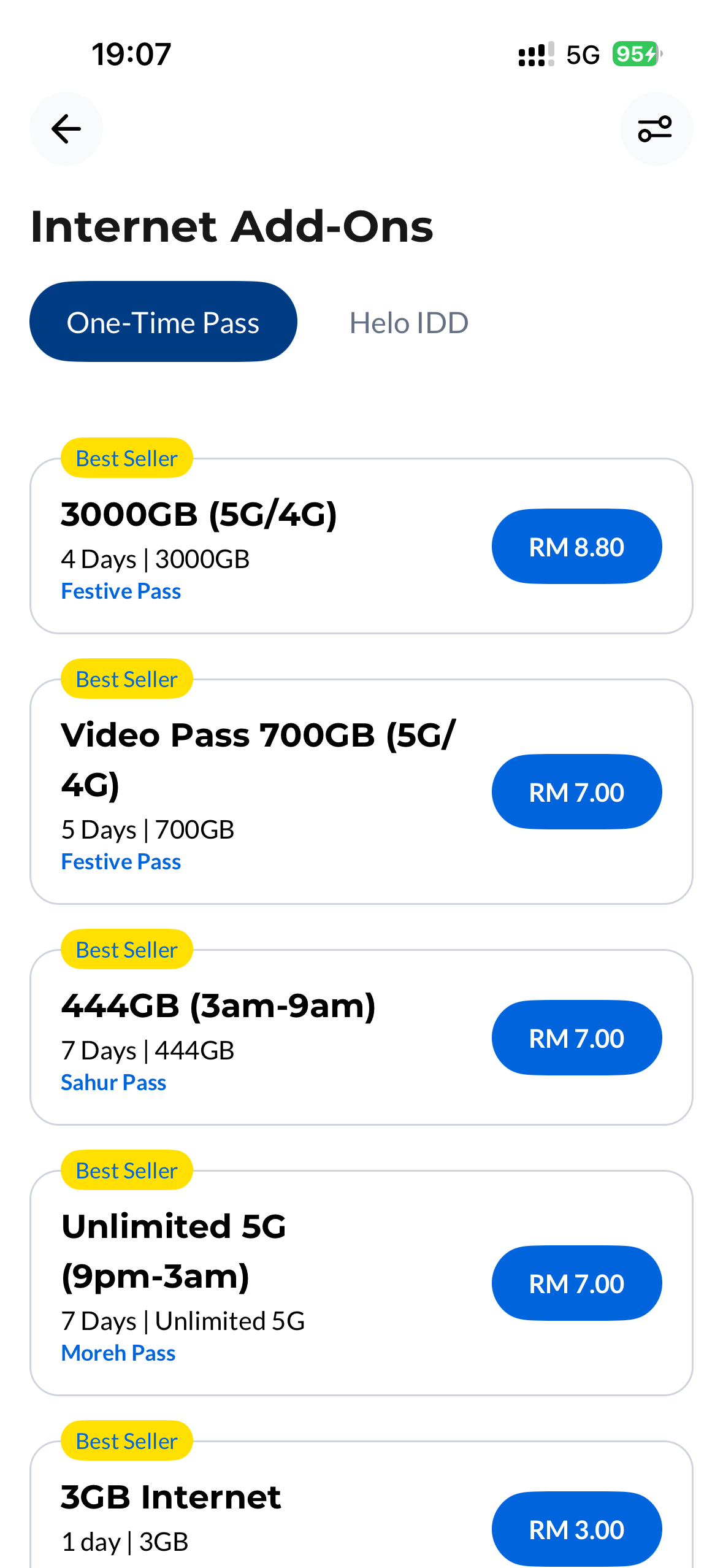 Voici quelques exemples pour CelcomDigi et Hotlink :